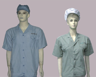 防静电工作服使用各种防静电防尘面料(导电绸,T/C面料,无纺布面料,涤纶等),具有优良持久的防静电防尘 性能,能有效地释放人体静电荷,且服装本身不起尘,不粘尘,能有效杀菌、抑菌。常用的款式有防静电大褂、防静电分体服(夹克和长裤)和防静电连体服。穿用 防静电服必须与防静电鞋配套使用,并每月按国家标准对其复检。