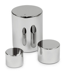 圆柱状砝码E2、 F1、F2和M1 OIML级砝码。 特种钢或灰色铸铁圆柱状砝码,高度抛光或涂黑色,耐腐蚀,范围1g到1000kg。圆柱状砝码为非磁化,密度8.0g/cm3。