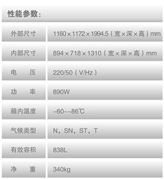 温度控制微电脑控制,箱内温度-70~-86℃可调,超温报警,断电记忆,调节精度为0.1℃;