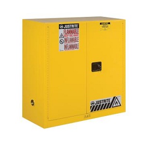Justrite安全柜采用坚固的1mm厚的焊接钢板构成双壁结构,形成38mm的隔气空间,有效地提高了耐火性。